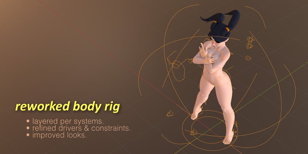 "Thanks for the view and welcome. This is a product for users/artists that are in search of a very close representation of the human body in a well crafted stylized female character. And as usual, No Weight Painting, No Corrective Shape Keys."